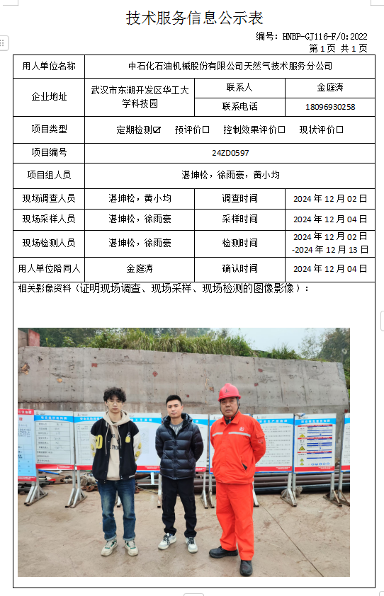 中石化石油機(jī)械股份有限公司天然氣技術(shù)服務(wù)分公司定期檢測項目公示