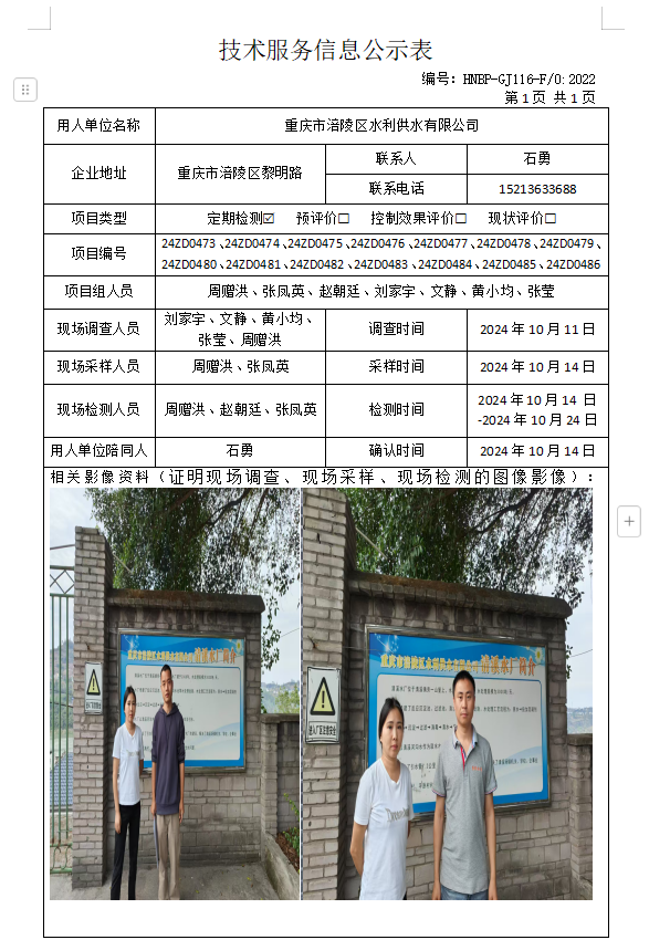 重慶市涪陵區(qū)水利供水有限公司馬武水廠定期...