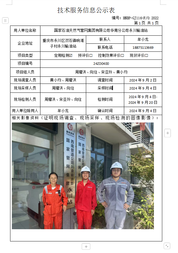國(guó)家石油天然氣管網(wǎng)集團(tuán)有限公司華南分公司永川輸油站定期檢測(cè)項(xiàng)目公示
