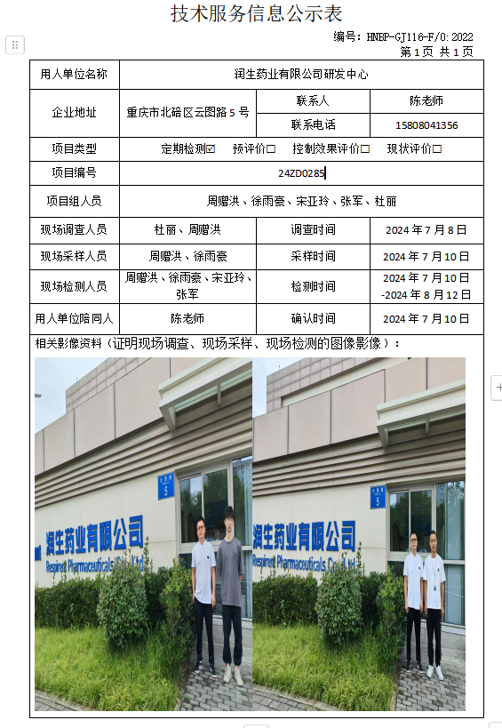 潤生藥業(yè)有限公司研發(fā)中心定期檢測項目公示