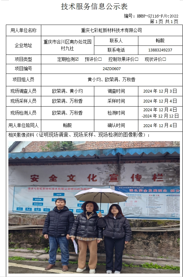 重慶七彩虹新材料技術(shù)有限公司定期檢測項(xiàng)目公示