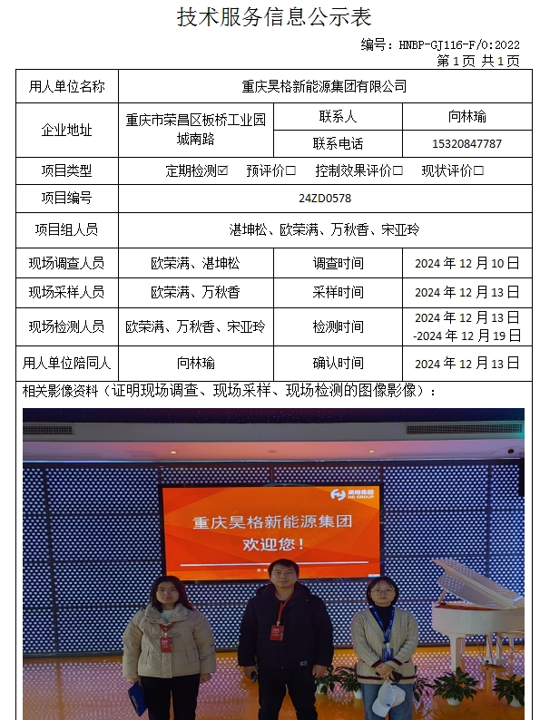 重慶昊格新能源集團有限公司定期檢測項目公示