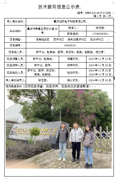 重慶達(dá)標(biāo)電子科技有限公司定期檢測項(xiàng)目公示