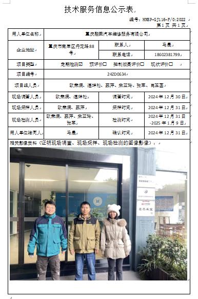 重慶融聚汽車維修服務(wù)有限公司定期檢測項目公示