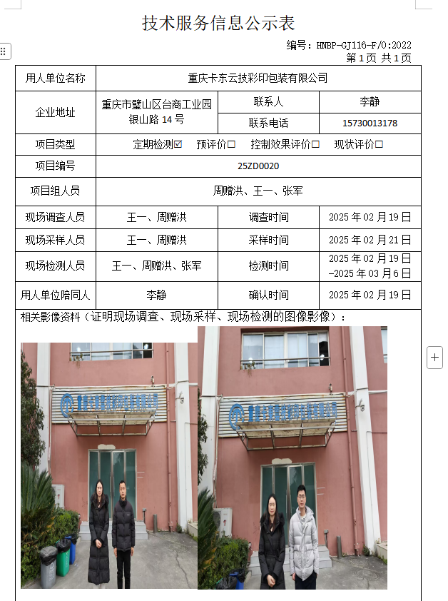 重慶卡東云技彩印包裝有限公司定期檢測(cè)項(xiàng)目公示