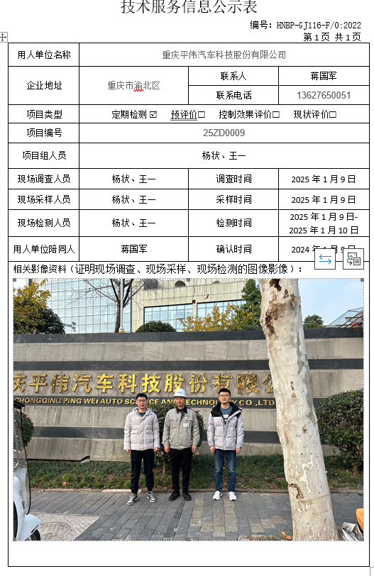職業(yè)衛(wèi)生評(píng)價(jià)項(xiàng)目公示