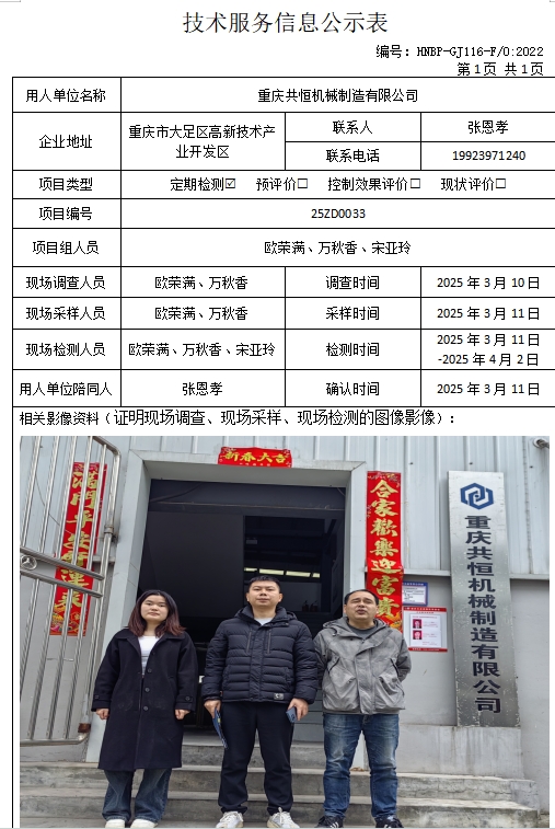 重慶共恒機械制造有限公司定期檢測項目公示