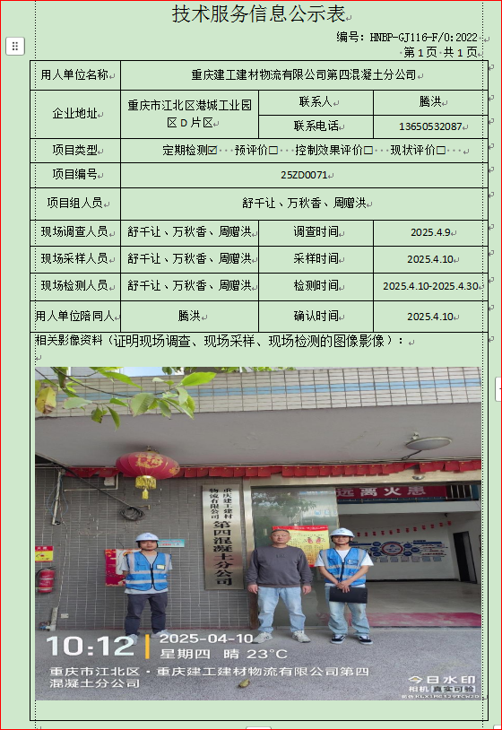 重慶建工建材物流有限公司第四混凝土分公司定期檢測(cè)項(xiàng)目公示