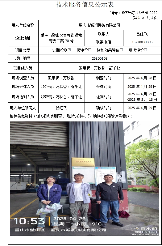 重慶市誠潤機(jī)械有限公司定期檢測項(xiàng)目公示
