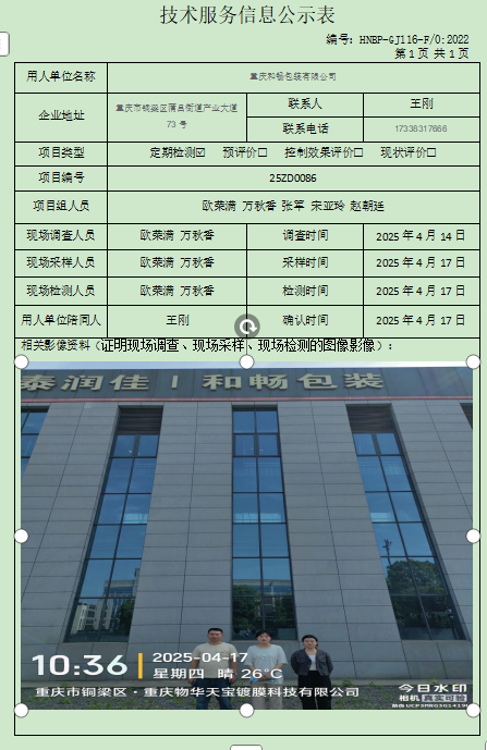 重慶和暢包裝有限公司定期檢測項(xiàng)目公示