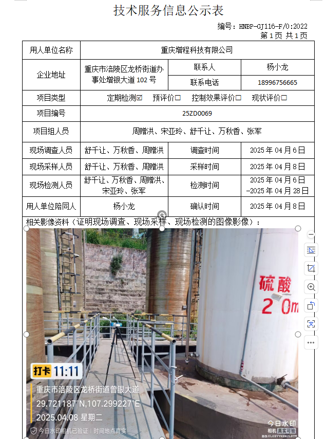 重慶增程科技有限公司定期檢測項目公示