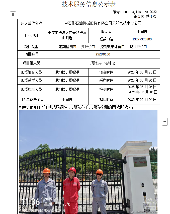 中石化石油機械股份有限公司天然氣技術服務分公司定期檢測項目公示