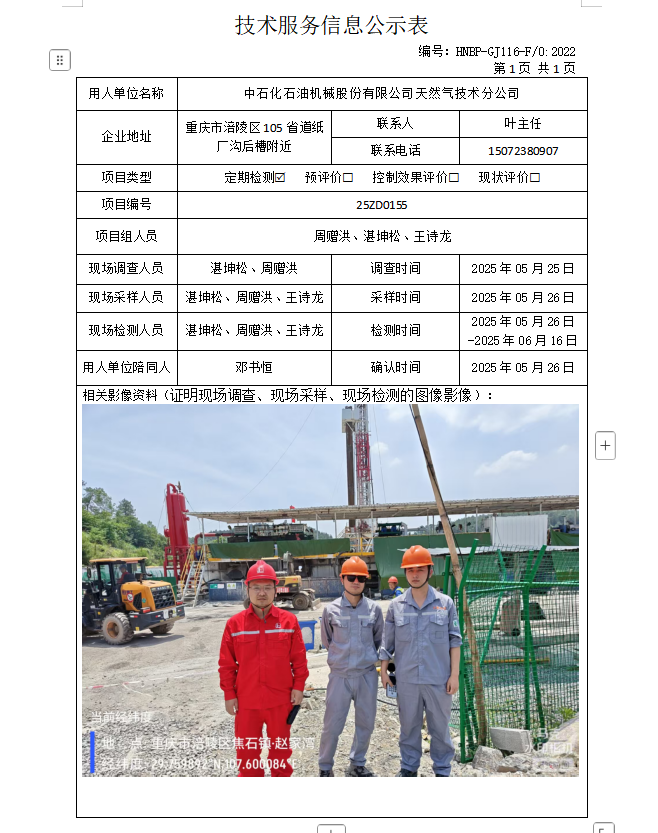 中石化石油機械股份有限公司天然氣技術(shù)服務(wù)分公司定期檢測項目公示