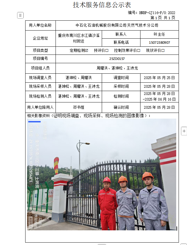 中石化石油機(jī)械股份有限公司天然氣技術(shù)服務(wù)分公司定期檢測(cè)項(xiàng)目公示