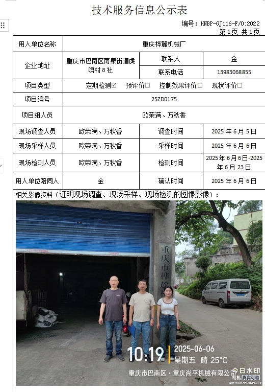 重慶樺麓機械廠定期檢測項目公示