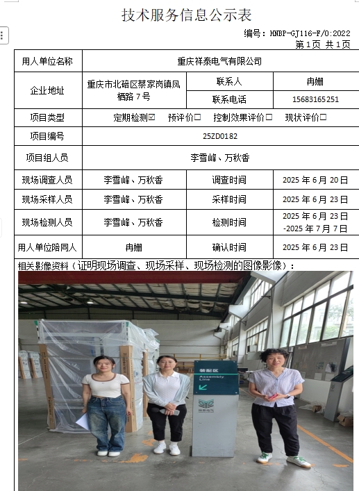 重慶祥泰電氣有限公司定期檢測(cè)項(xiàng)目公示