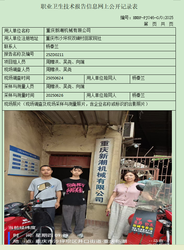 重慶新潮機(jī)械有限公司定期檢測項(xiàng)目公示