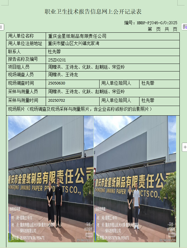 重慶金星紙制品有限責任公司定期檢測項目公示