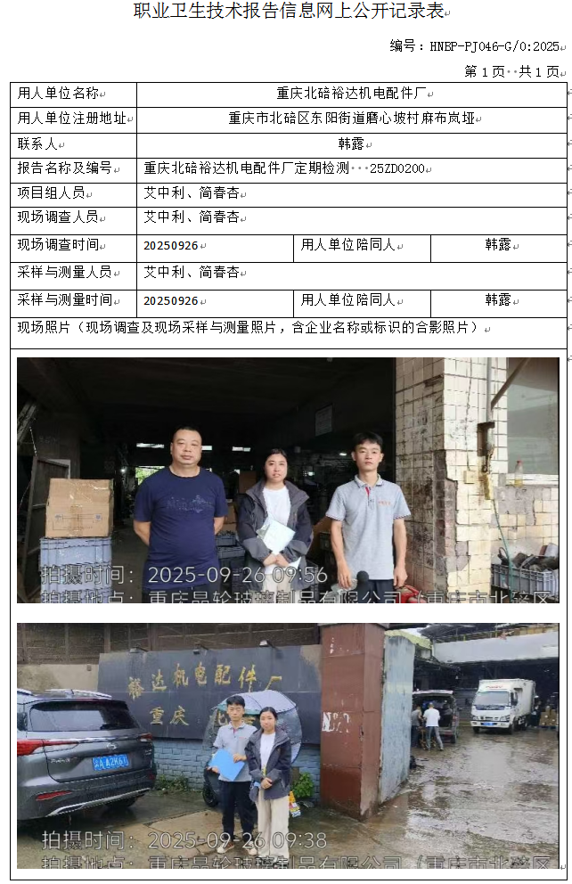 重慶北碚裕達(dá)機(jī)電配件廠定期檢測公示