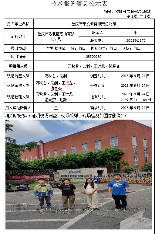 重慶清平機械有限責任公司定期檢測項目公示