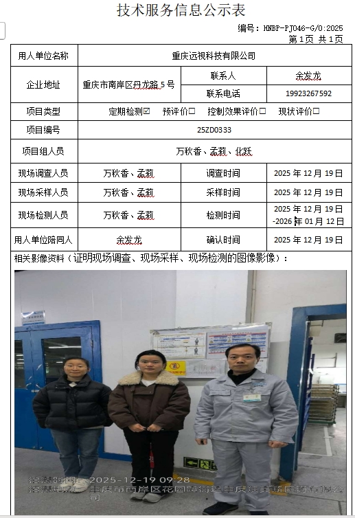 重慶市眾泰無(wú)紡制品有限公司定期檢測(cè)項(xiàng)目公...