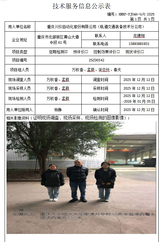 重慶川儀自動化股份有限公司(軌道交通裝備技術(shù)分公司)定期檢測項目公示