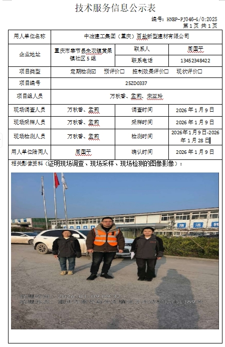 中冶建工集團(重慶)百鹽新型建材有限公司定期檢測項目公示