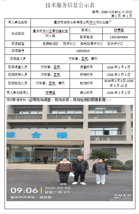 重慶市渝東水務有限公司開州污水處理廠定期檢測項目公示