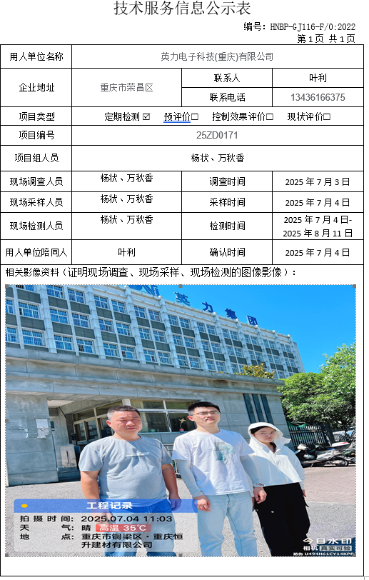 職業(yè)衛(wèi)生檢測項目公示